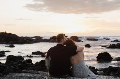 After the surprise waterfall proposal, we weren’t done yet. Later that same day, we headed to a gorgeous hidden beach on the Big Island to capture some golden-hour magic. The light was soft, the breeze was warm, and the beach during sunset gave us the perfect romantic setting to slow down, celebrate, and soak it all in.